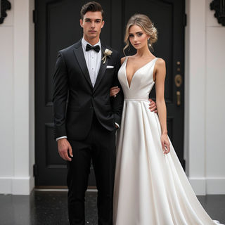 Black tie weddings exude sophistication with deep black, gold, and emerald hues, perfect for an elegant affair. Luxurious decor with crystal chandeliers, sleek tableware, and plush velvet linens dazzles guests with opulence. Floor-length gowns and classic tuxedos in midnight tones refine the look, complemented by rich, dramatic arrangements of orchids, calla lilies, and roses that elevate the luxurious, polished mood of the occasion.